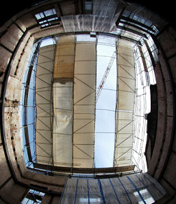 Abbruch und komplette Entkernung, Abfangung über 5 Geschosse.