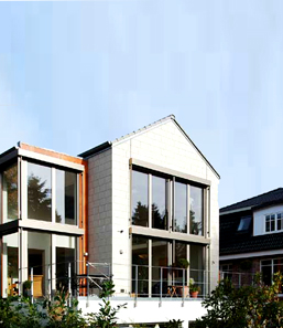 Haus 55 Modernes Wohnen für eine vierköpfige Familie. Zweigeschossiger Wohnraum mit eingehängtem Schlafraum, Lichtdurchflutetes Wohnen + Leben, der Wohnraum + die Küche als Mittelpunkt des Hauses.