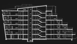 Projektleitung, Kostenplanung, Detailplanung/ Ausführungsplanung, Fassadenentwurfsplanung. Vorhangfassade aus vorgebogenen 3mm starken pulverbeschichteten Aluminiumtafeln, Fassade mit Schiebeelemnten aus Zedernholz